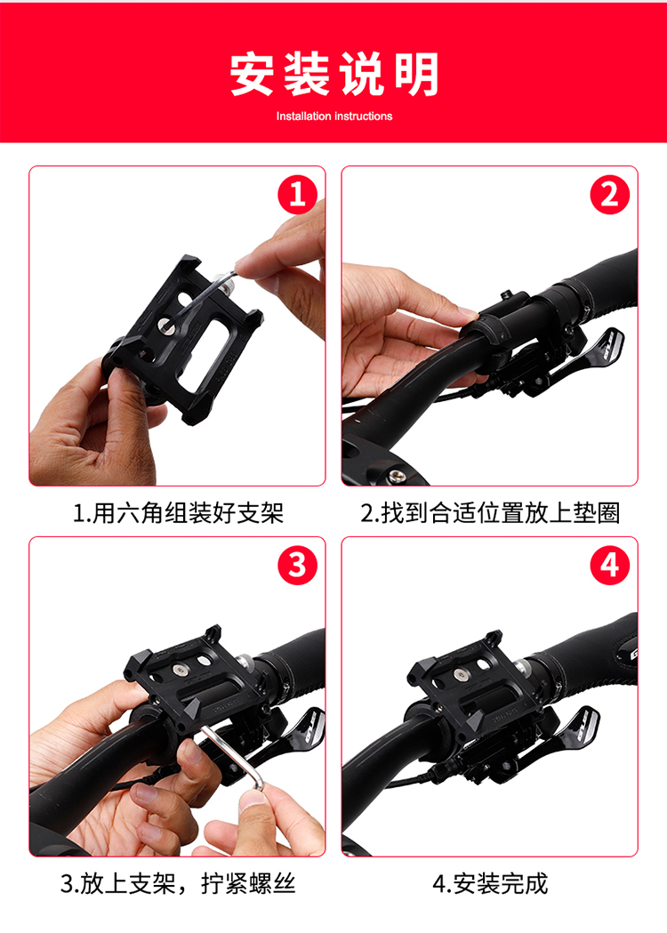 簡介:可簡單快捷安裝在車把或車頭,能讓您在外出騎行時輕松享受音樂,亦可導(dǎo)航為您指路,穩(wěn)定牢固,四爪扣更易固定手機。