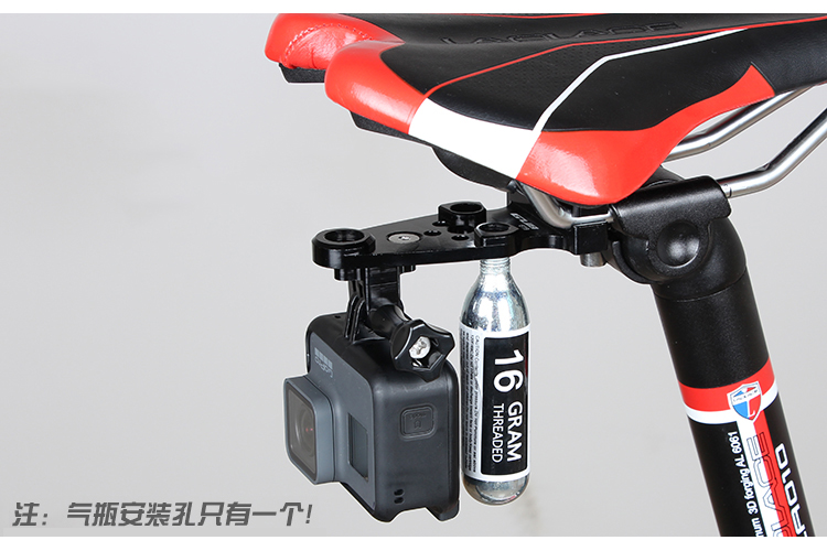 簡介:安裝在坐墊坐弓后部,兼容GoPro運動相機,可裝氣瓶。