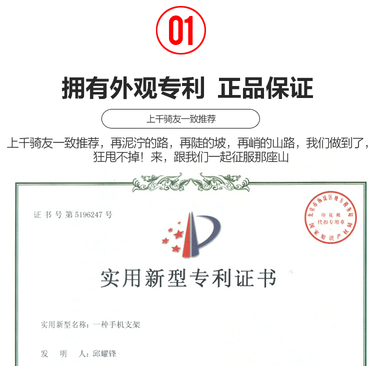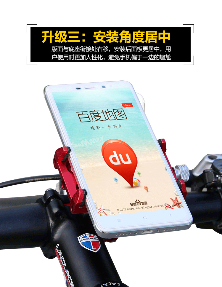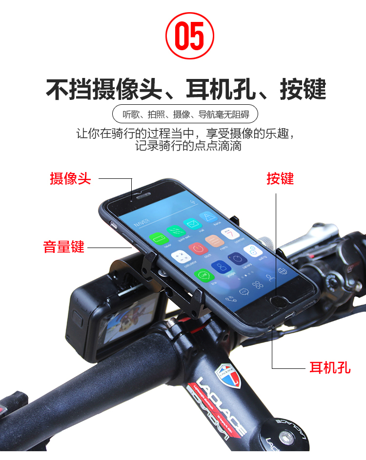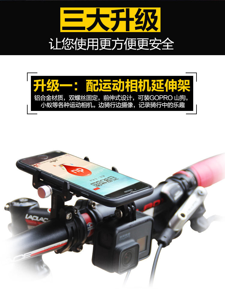 簡(jiǎn)介:可簡(jiǎn)單快捷安裝在車把或車頭,能讓您在外出騎行時(shí)輕松享受音樂(lè),亦可導(dǎo)航為您指路,支持加裝運(yùn)動(dòng)相機(jī),穩(wěn)定牢固,四爪扣更易固定手機(jī),升級(jí)防盜螺絲,使用更放心。
