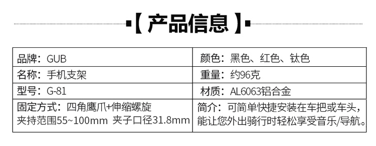 名稱(chēng):GUB G-81 鋁合金手機(jī)支架