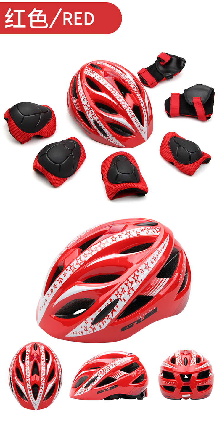 特色:兒童騎行戶外運動頭盔套裝,采用PC+EPS一體成型技術,更安全更貼心,同時頭盔尾部的反光標起到警示作用,讓孩子的夜騎更安全。另搭配兒童護具一套,貼心呵護孩子的安全!