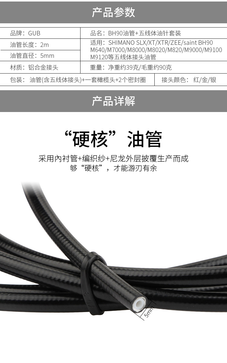 適用:SHIMANO SLX/XT/XTR/ZEE/saint BH90/M640/M7000/M8000/M8020/M820/M9000/M9100/M9120等五線(xiàn)體接頭油管