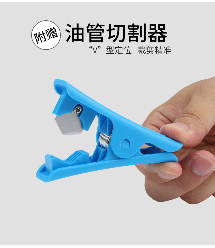 材質(zhì):全鋁合金臺+不銹鋼頂針(油針壓入工具),ABS工程塑料+不銹鋼刀片(油管切割器)