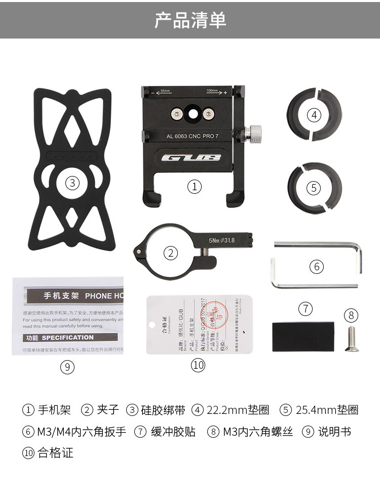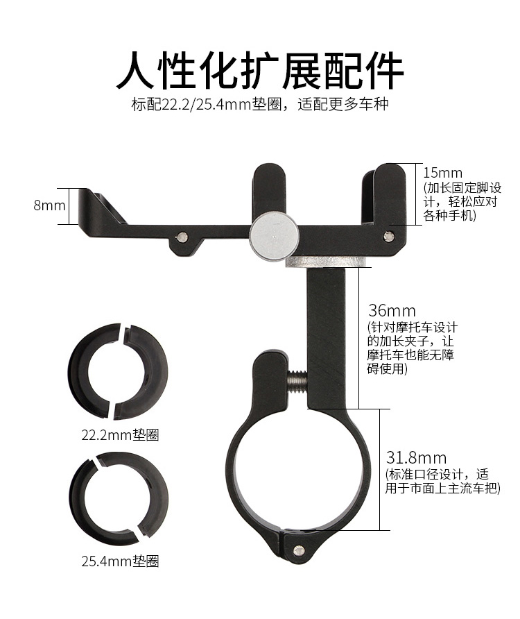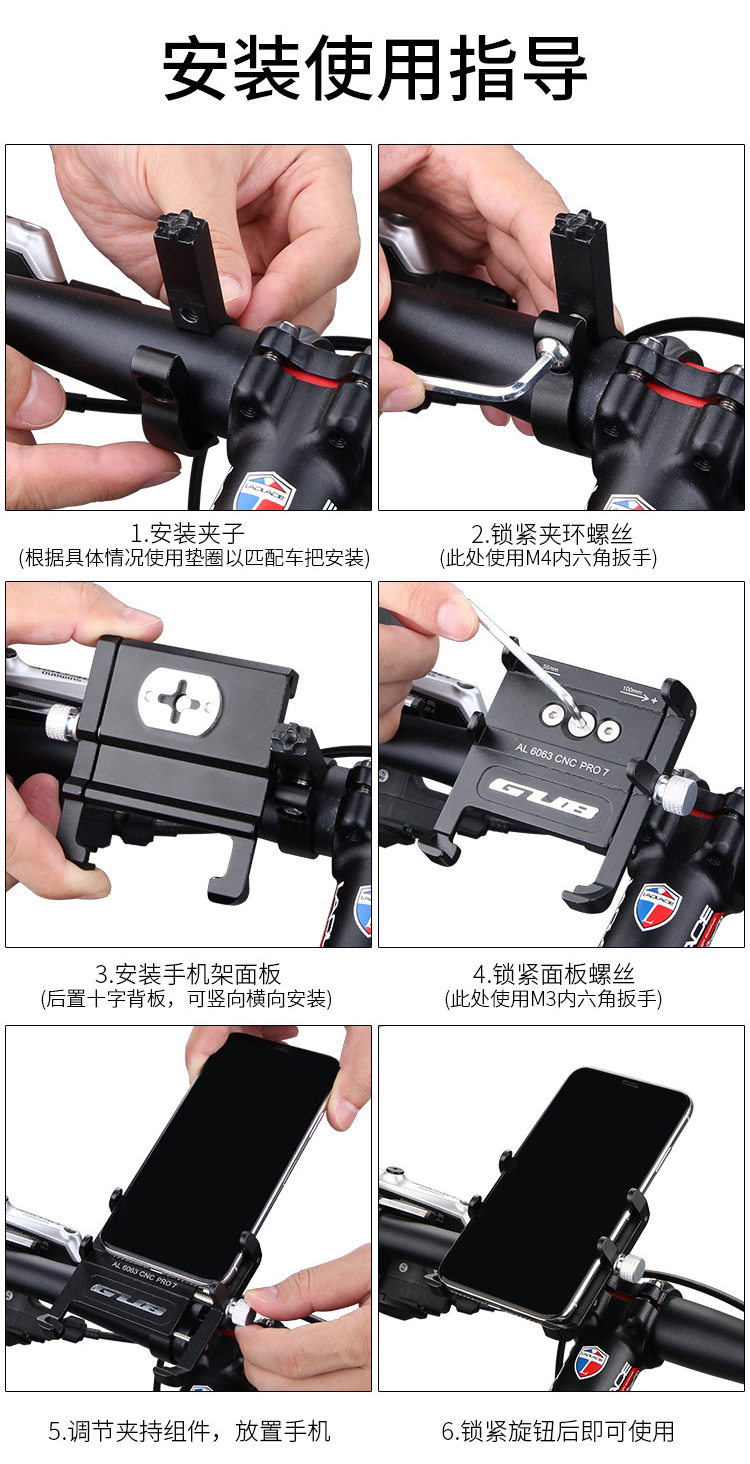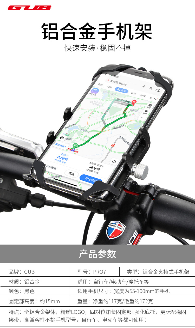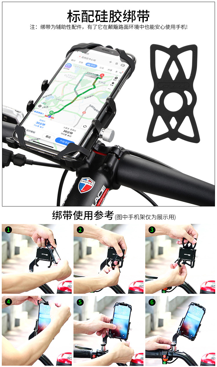 特點:全鋁合金架體,精雕LOGO,四對位加長固定部+強化底托,更標配穩(wěn)固綁帶,高兼容性不挑手機型號,自行車、電動車等都可使用!
