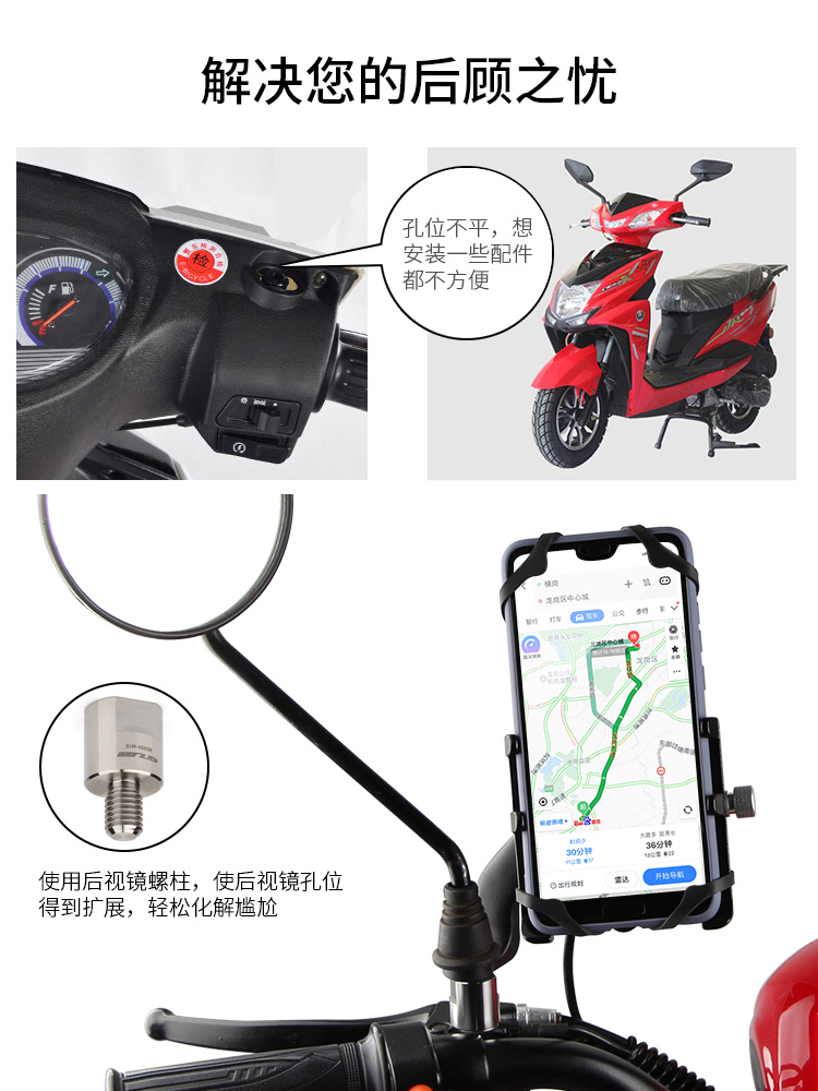 簡介:此配件為后視鏡輔助配件,采用不銹鋼材質(zhì),耐用不生銹,用于摩托車/電動(dòng)車后視鏡孔位的擴(kuò)展,起到墊高或更好適配的作用。