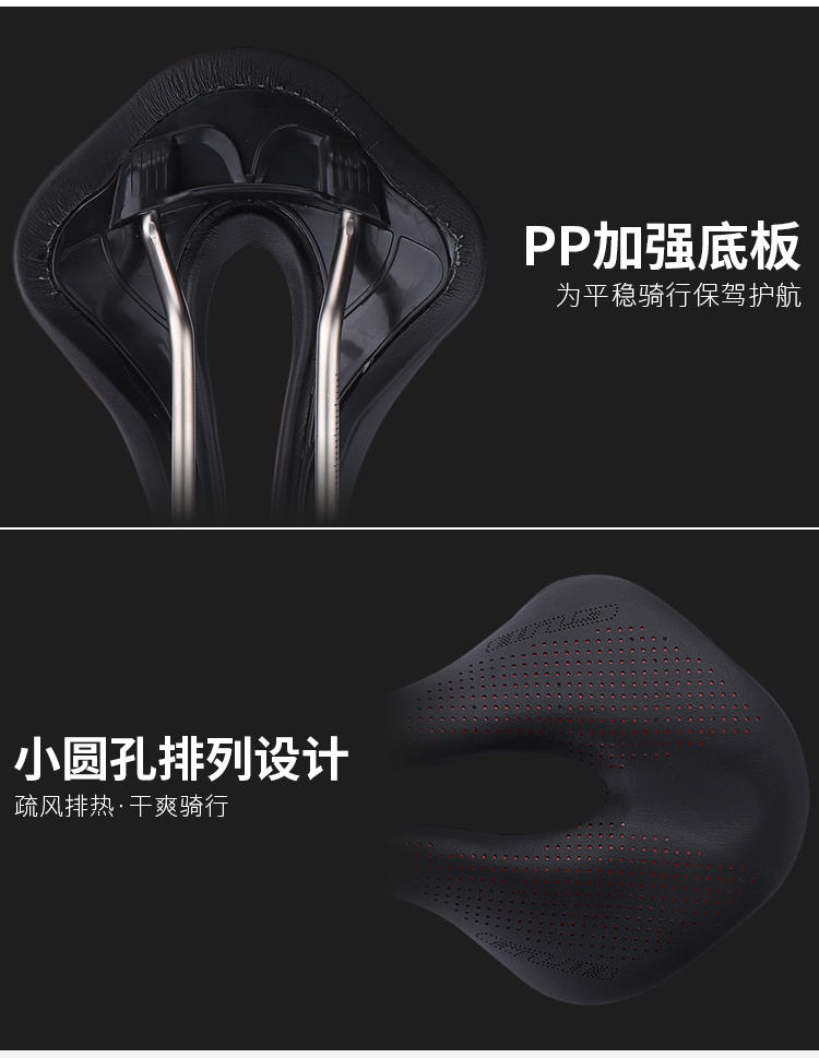 特色:超纖皮表面耐磨有質(zhì)感,鉻鉬鋼中空軌道強度高,小圓點排列設(shè)計,疏風(fēng)排熱,加強PP底板,平穩(wěn)輸出,安心騎行!