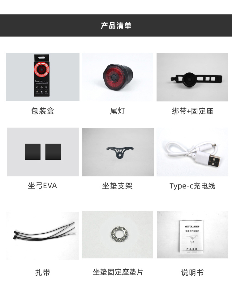 燈光模式:常亮/呼吸閃/慢閃/快閃/節(jié)奏閃/ECO快閃