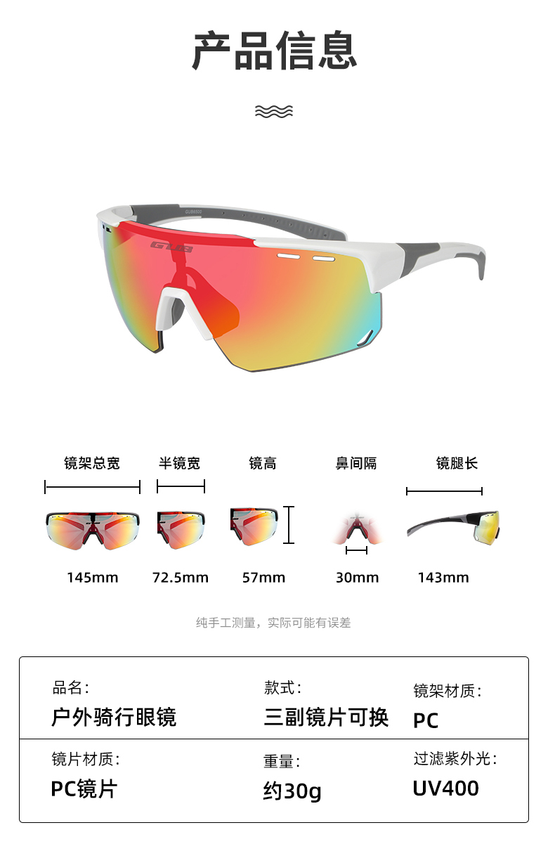 材質(zhì):PC鏡框和鏡腳、PC鏡片、TPE鼻托