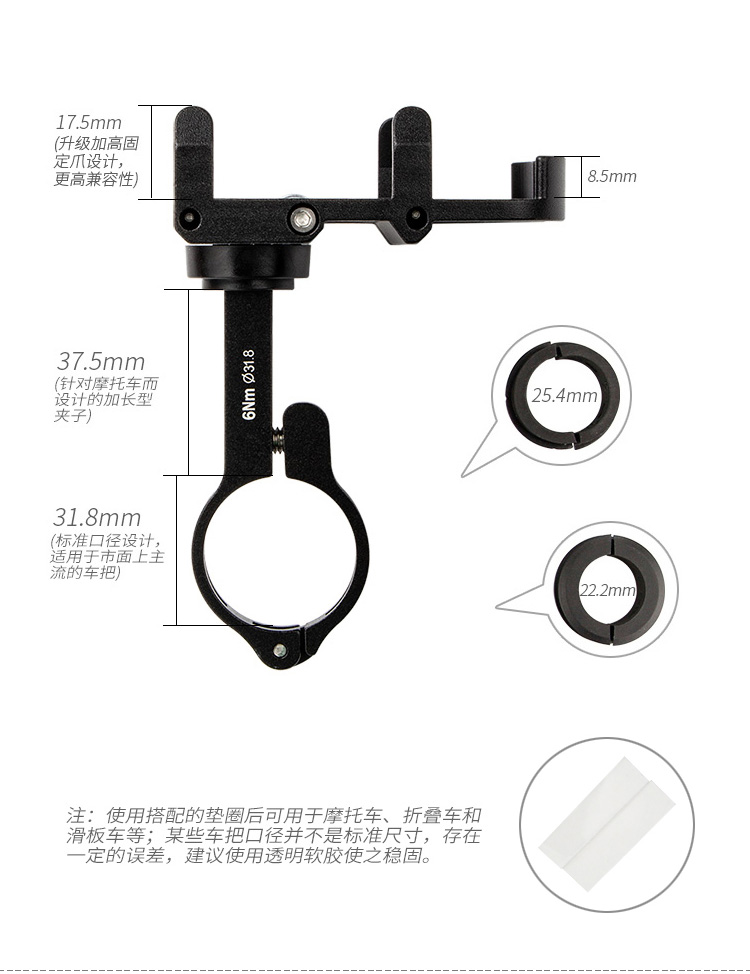 功能:加長固定部,可應(yīng)付加裝特厚手機殼的手機,標配防盜螺絲和專用扳手,支持免工具平面360度旋轉(zhuǎn)。