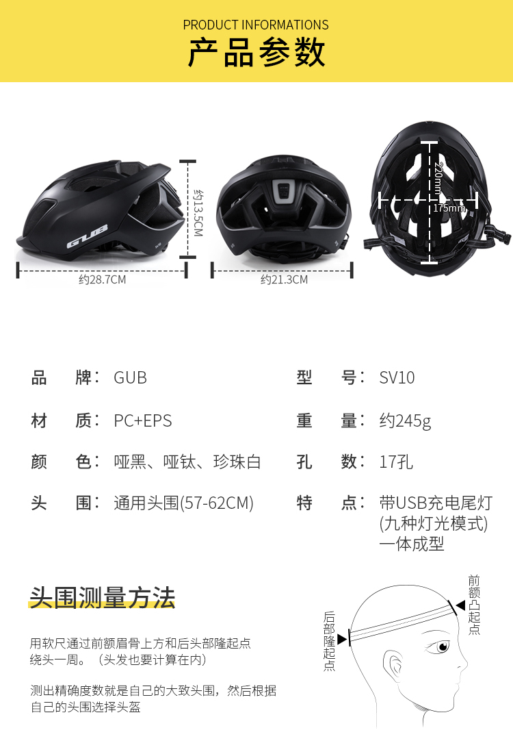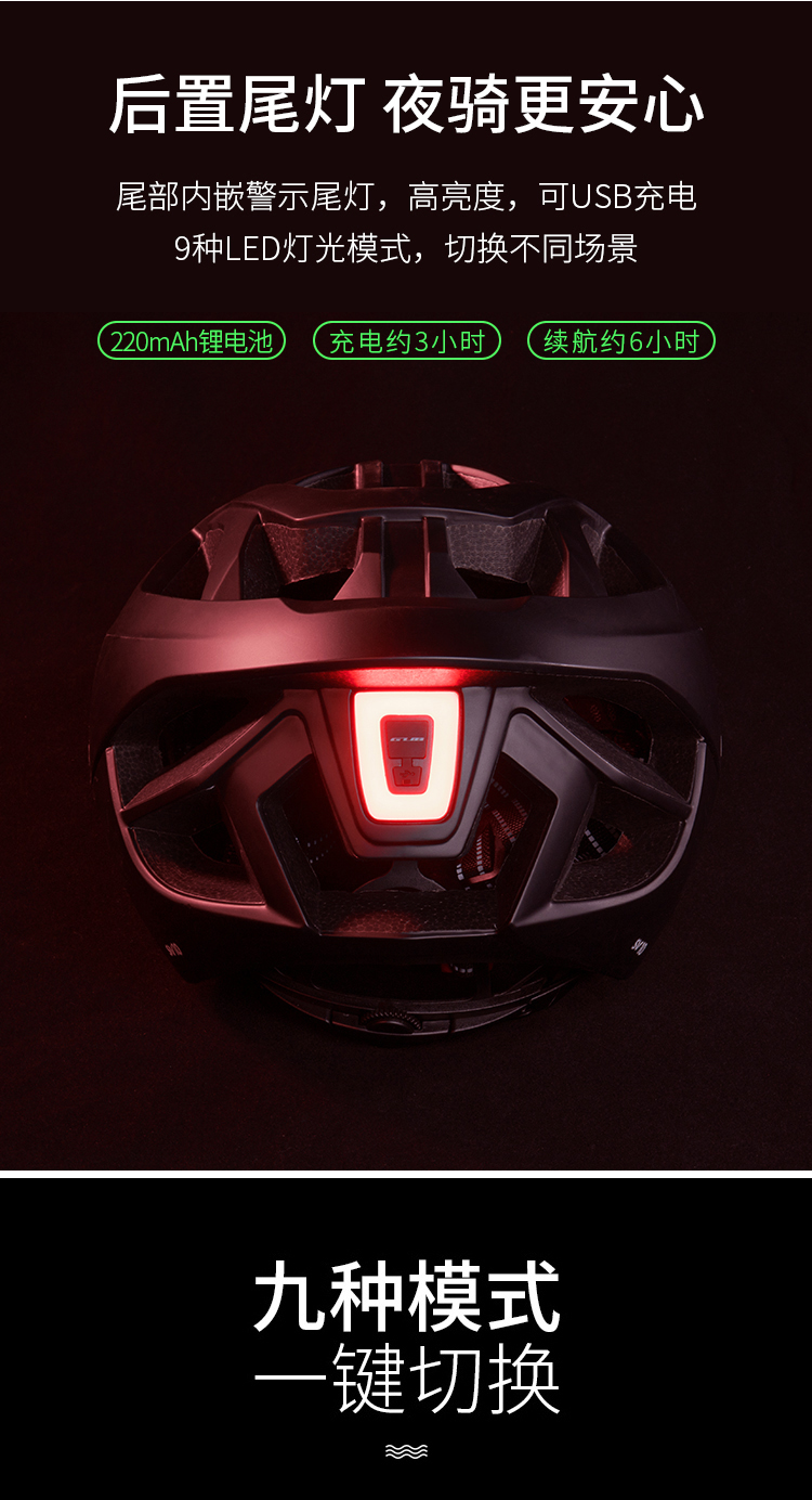 特色:帶USB充電尾燈(九種模式),一體成型,造型時尚,多通風孔設計,多色可選。