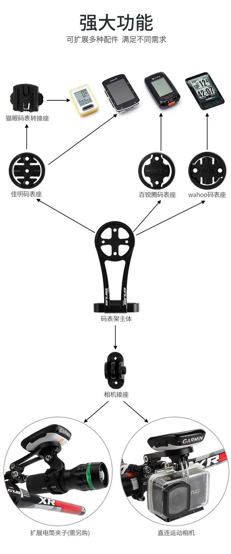 配置:配運動相機轉(zhuǎn)接座,wahoo、佳明、百銳騰和貓眼碼表接座
