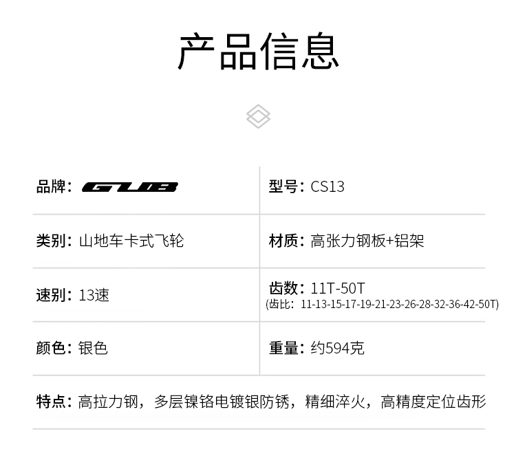 齒比:11-13-15-17-19-21-23-26-28-32-36-42-50T