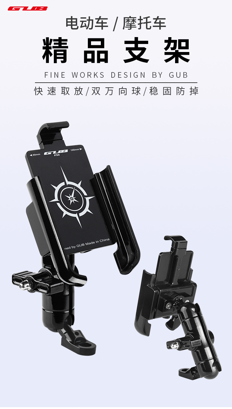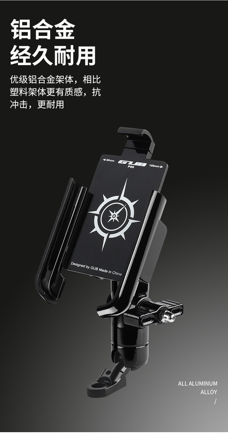 GUB P50 鋁合金手機(jī)支架(后視鏡款)