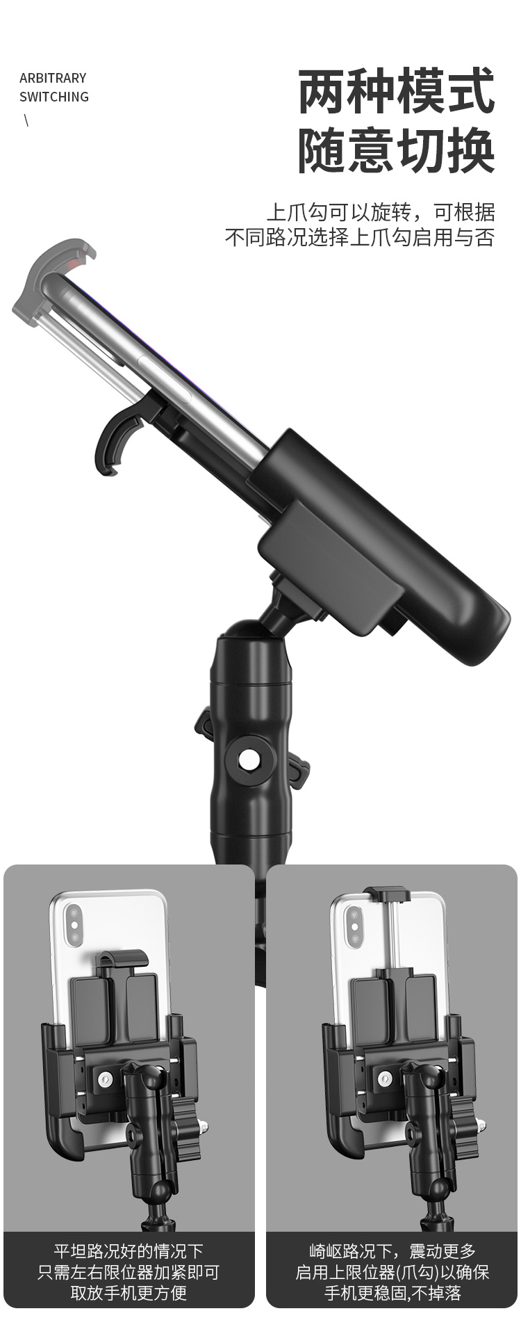 特點(diǎn):鋁合金架體,高兼容性不挑手機(jī)型號,摩托車、電動車等都可使用,四面環(huán)繞固定,夾手機(jī)更牢固,快速取放省時(shí)省力,雙萬向球旋轉(zhuǎn)系統(tǒng),滿足多場景使用需求。
