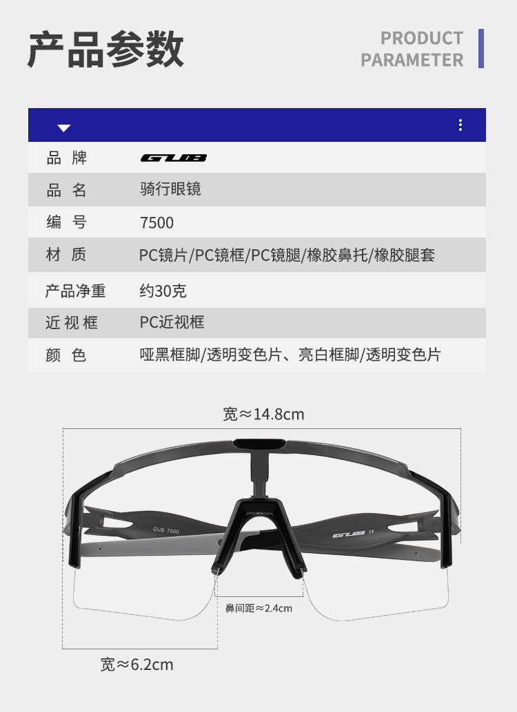 顏色:啞黑框腳/真白冰藍(lán)片、啞黑框腳/真黑紅片、啞黑框腳/透明變色片、亮白框腳/透明變色片