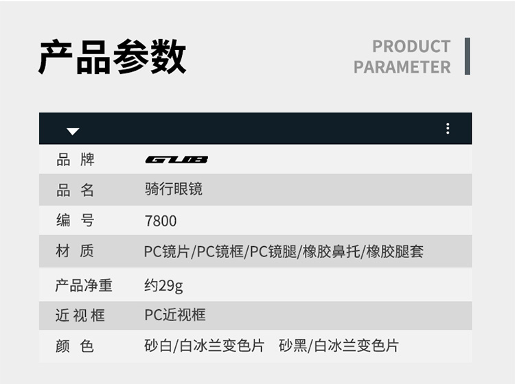 名稱:GUB 7800 騎行眼鏡