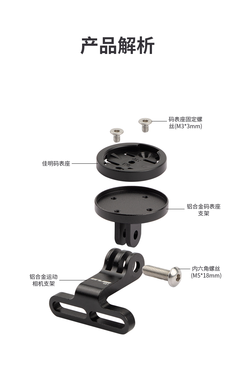 特點(diǎn):鋁合金材質(zhì)堅(jiān)固耐用,體積小巧、居中安裝不占車(chē)頭空間,標(biāo)準(zhǔn)運(yùn)動(dòng)相機(jī)接口,可接多種兼容此接口的配件,如碼表座,運(yùn)動(dòng)相機(jī)和車(chē)前燈等