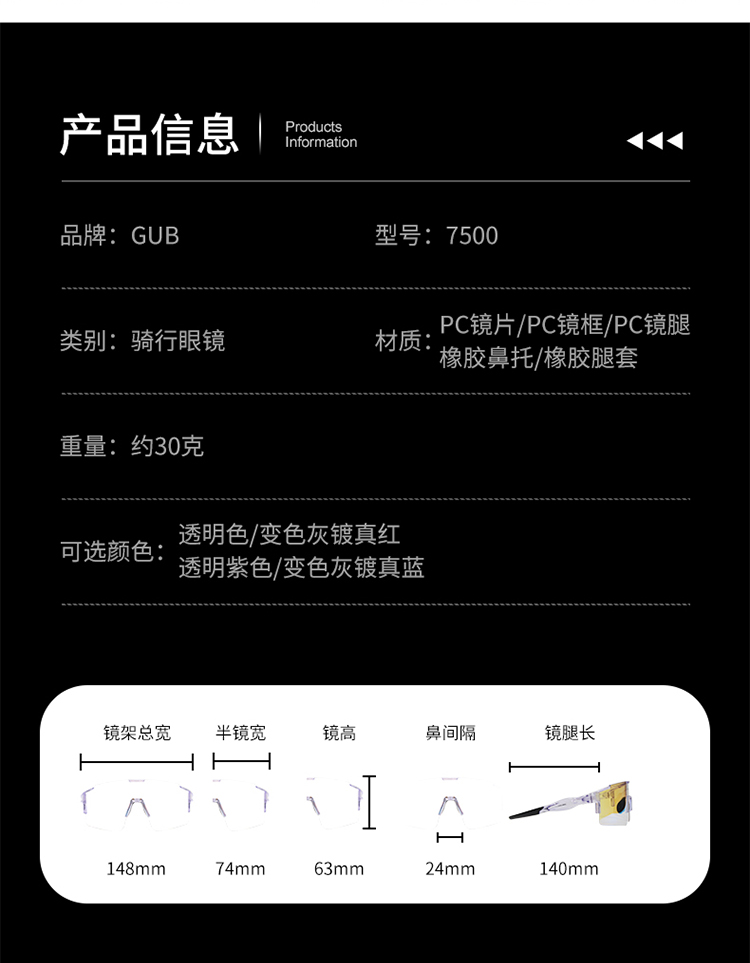 顏色:透明色/變色灰鍍真紅、透明紫/變色灰鍍真藍
