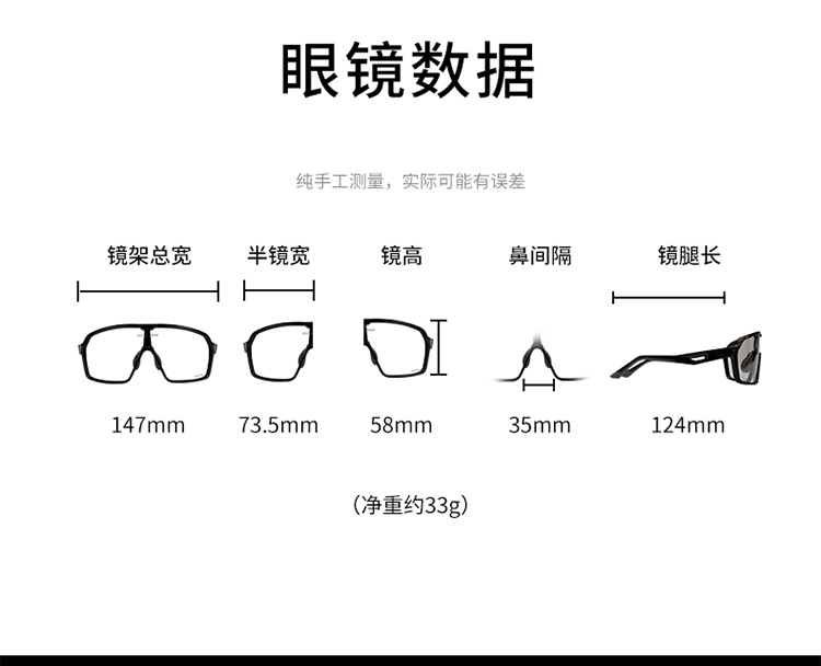 重量:眼鏡凈重約33克,毛重約151克(含外包裝)
