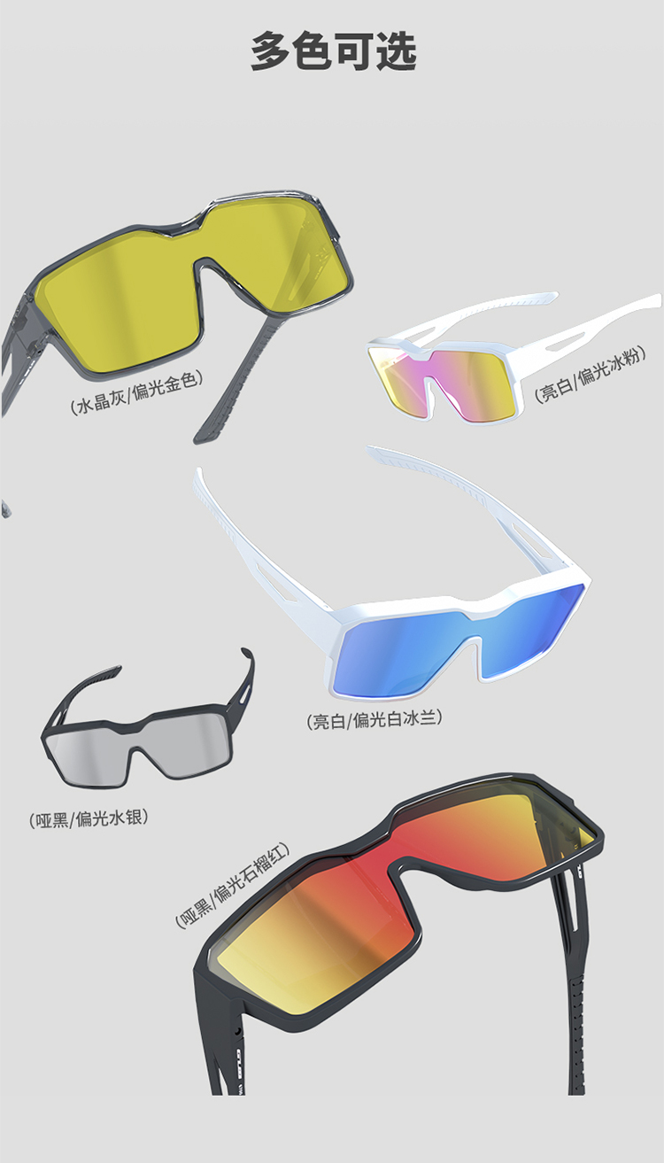顏色:啞黑/偏光石榴紅、亮白/偏光白冰藍、啞黑/偏光水銀、亮白/偏光冰粉、水晶灰/偏光金色