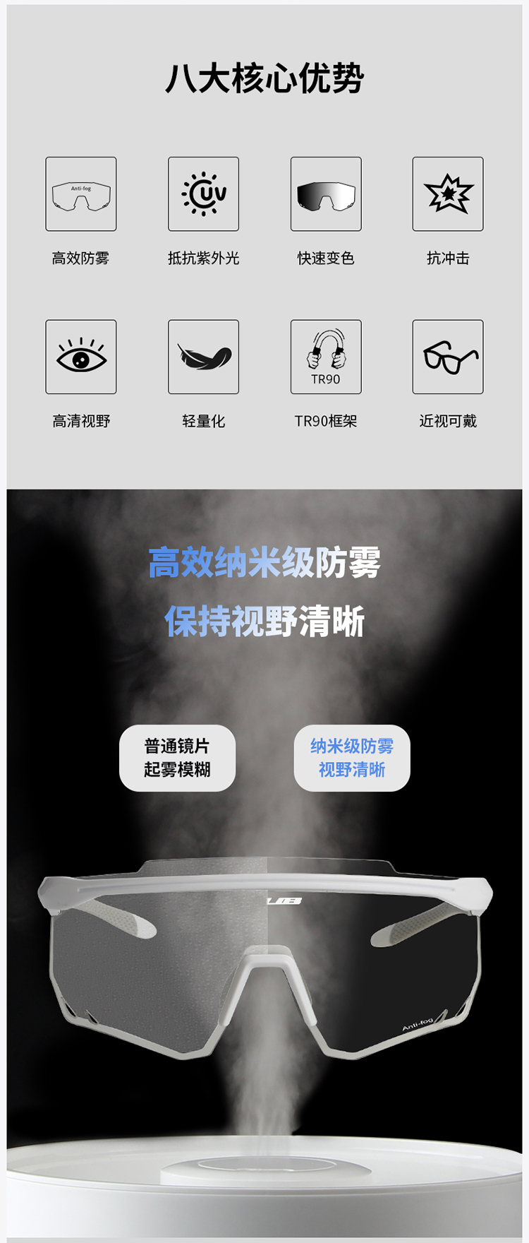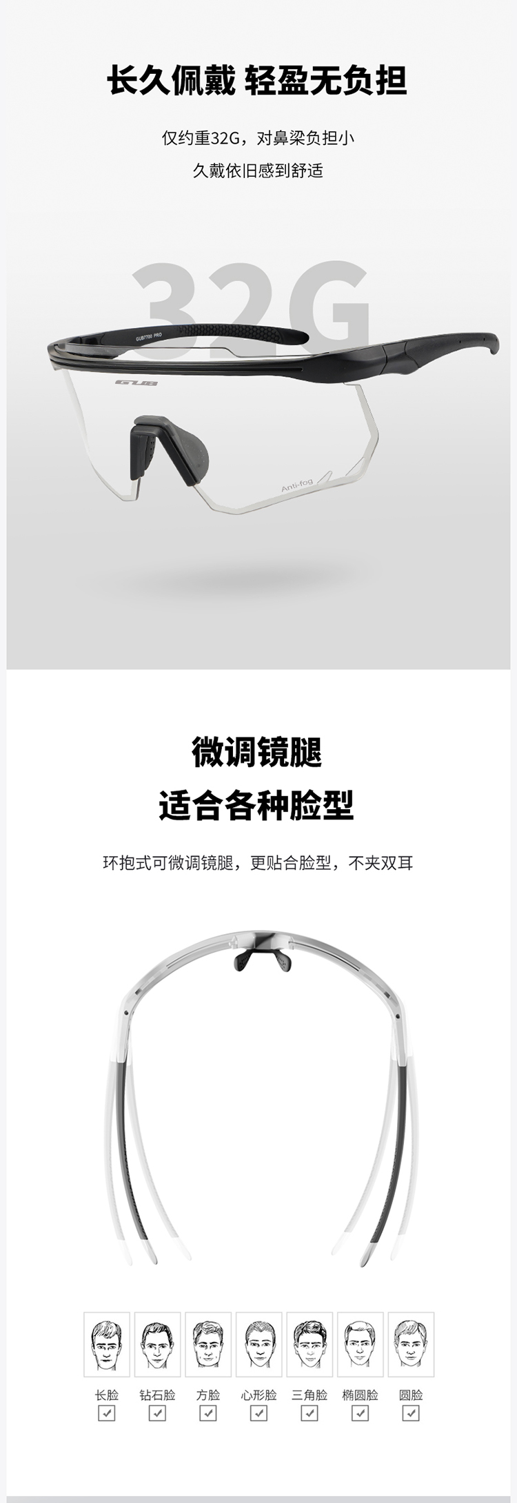 名稱:GUB 7700 PRO 防霧變色眼鏡