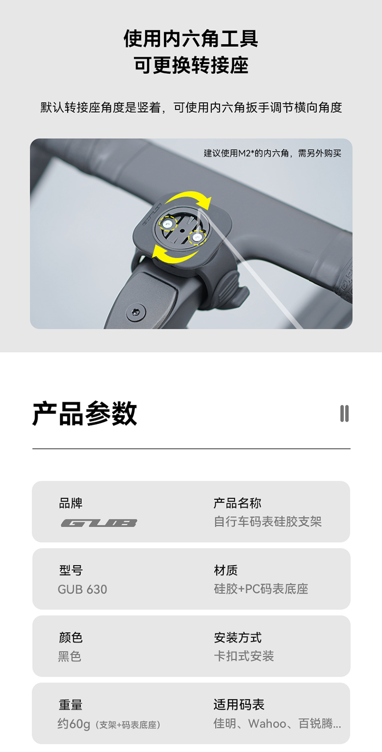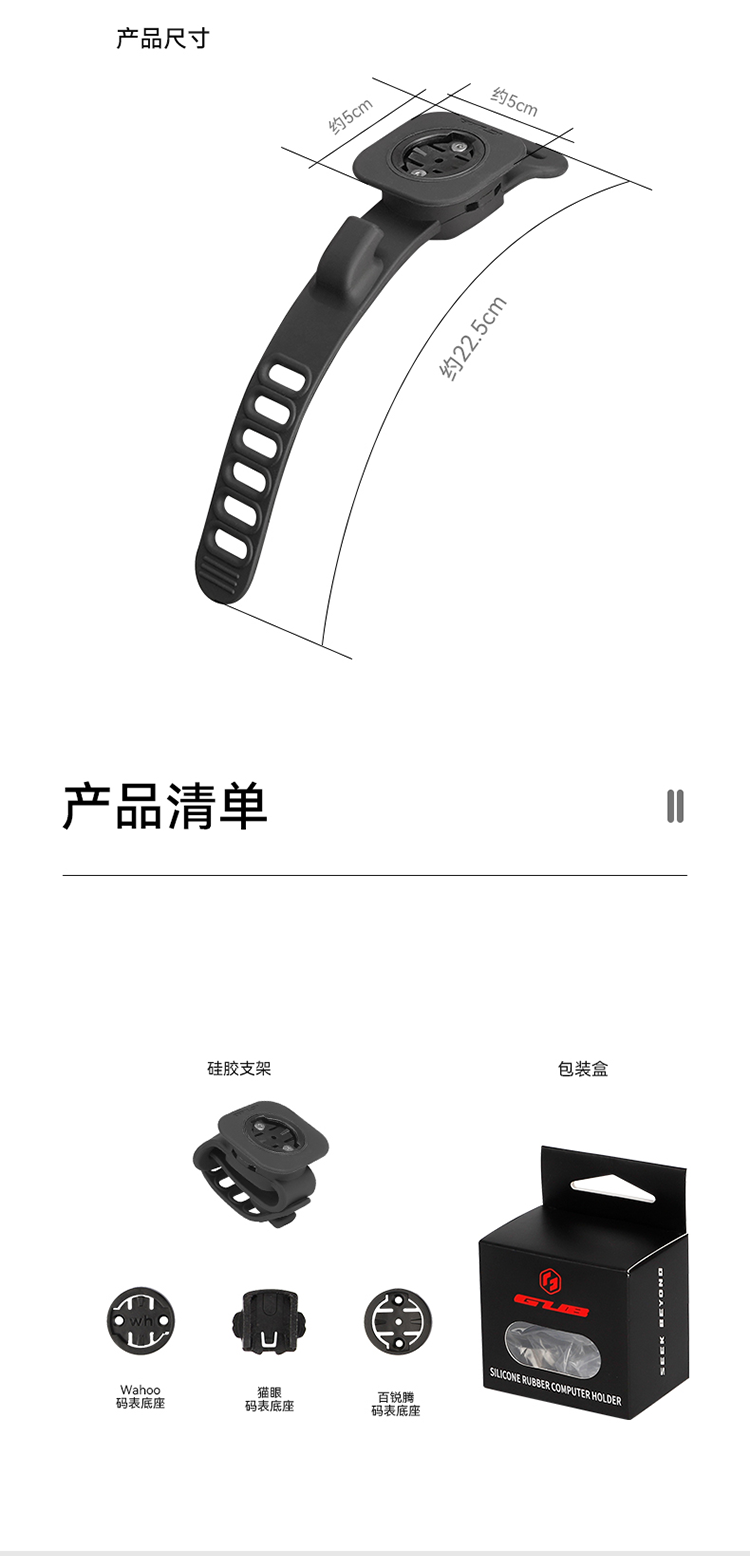 特點:硅膠架體,不傷車把,安裝方便,兼容多種碼表