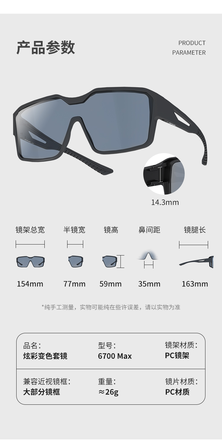 材質(zhì):PC鏡片、PC鏡架