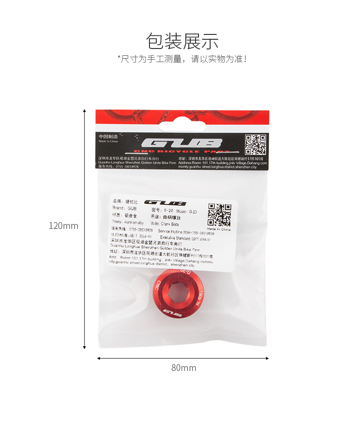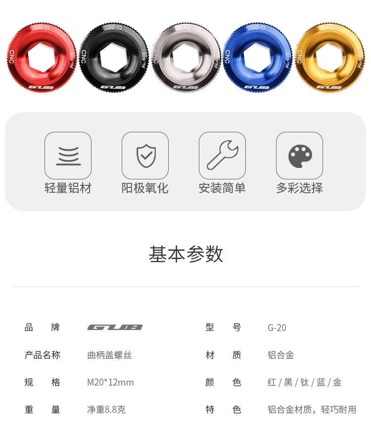 產品名稱:GUB G-20 中空牙盤專用曲柄螺絲