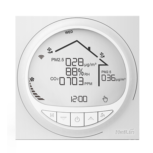 豪華型大液晶顯示新風控制器,可通過無線 APP 遠程操控,適用于工業(yè)、商業(yè)及 家庭居室的新風控制,可選擇風機為室內(nèi)、室外循環(huán)模式,風機三速(自動、高、中、 低、關(guān)閉)可調(diào),帶 RS485 通訊轉(zhuǎn)換控制。 新風控制器采用微電腦控制技術(shù),大屏幕液晶顯示,可從云端獲取室內(nèi)環(huán)境信息 并可通過液晶顯示:PM2.5 濃度顯示(ug/m3)、濕度顯示(%RH)、CO2濃度顯示(PPM)、 時鐘顯示 ...